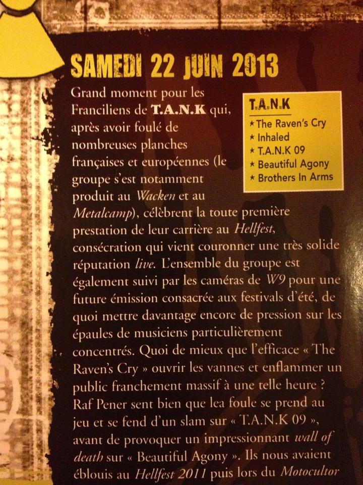 T.A.N.K joue son métal partout en France et en Belgique, où sa fougue et sa hargne sur scène sont saluées par le public, les webzines, mais aussi les groupes dont il fait la première partie :